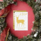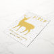 An elegant white and gold card featuring a golden deer and gold confetti.