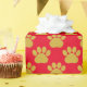 Cute Gold Glitter Paw Prints Pet Lovers Red Wrapping Paper
