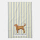 Cute Golden Doodle blue and cream striped Kitchen Towel