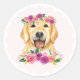Cute Golden Retriever and Purple Flowers Dog Classic Round Sticker