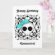 Adorable Gothic punk skull wearing a light blue blow on a black swirly Victorian kaleidoscope background. Shown here on a pretty white birthday card for teen or tween girls. The text is customizable. Please change it before ordering.