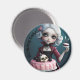 customizable, cute goth gothic vampire girl with skull decorated birthday cake magnet