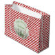 This Cute Grasshopper Insect Birthday Large Gift Bag features all-around red and white chequered background, capturing the essence of a charming picnic scene, with a green grasshopper hidden in the tall grass with ladybugs crawling about. Personalize with a heading and a name.