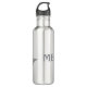 Cute Gray Peeking Cat Design Water Bottle with customizable text.