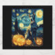Cute Great Dane Dog Halloween Jack O Lantern Pumpkin Face Starry Night Van Gogh Style