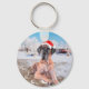 Cute Great Dane Dog Sitting In Snow Christmas Hat Keychain