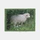This awesome fleece blanket features a photograph of a cute fluffy sheep. The sheep is surrounded by wild flowers and long grass and is greedily eating some leaves. It has a thick white coat of wool and a cute black nose.