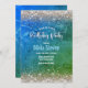 Cute green blue faux gold glitter monogram invitation