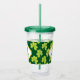 Cute Green Clover Shamrock Pattern with Monogram Acrylic Tumbler