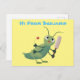 Cute green cricket insect cartoon illustration postcard