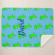 Cute Green Dino T-Rex On Blue Sherpa Blanket