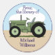 Cute Green Farm Tractor Personalized Bookplate Classic Round Sticker