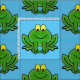 Cute Green Frog Design Fabric with customizable background colour.