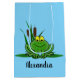 Cute Green Frog Design Gift Bag with customizable background colour.
