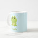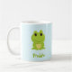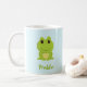 Showcasing an adorable green frog against a serene blue background, evoking a delightful sense of whimsy and charm. Personalized with a custom name, this artwork becomes a heartwarming and unique gift.
