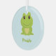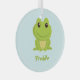 Cute green frog on blue glass ornament