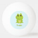 Cute green frog on blue ping pong ball