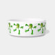 This is a heavy, durable bowl decorated with Tibbies of many colors, the perfect size for hungry/thirsty Tibs. The design is interesting and printing clear.