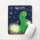 Cute green glow worm cartoon illustration mouse pad