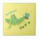 Cute green happy grasshopper cartoon tile