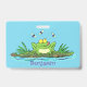 Cute green hungry frog cartoon illustration badge