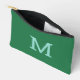 This zippered accessory pouch features a one customizable initial letter in a classic font. This rectangular pouch can be used as a makeup bag, travel storage pouch, knitting notion bag, crochet tool bag, sewing supplies pouch, or craft supplies bag. It’s the perfect way to keep cosmetics, small accessories, or craft tools organized. Makes a thoughtful personalized gift for bridesmaids, birthdays and Mother’s Day. Choose from one of several main colour options. Available in two sizes: SMALL (8.5” x 6”) and LARGE (12” x 8.5”).