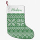 Add a festive touch to your home and hearth this holiday season with custom holiday stockings! The custom stockings feature a green and white sweater pattern with a white band at the top. Personalize the Christmas stockings with your name or custom monogram.