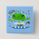 Cute Green Outer Space Aliens with Space Ship 2 Inch Square Button