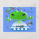 Cute Green Outer Space Aliens with Space Ship Postcard