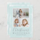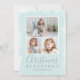 Send out holiday cheer with this simple and modern flat Christmas card featuring a photo collage with three of your favourite family photos over a mint green texture background on the front and one photo on the back. The front has the religious greeting, "Christmas Blessings" along with your family name and the year.