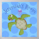 This happy green sea turtle is blowing bubbles! Drawn in cute cartoon illustration style on a blue background for a fun room!
