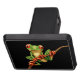 This adorable design features a small green tree frog holding on to a thin branch. The tiny frog is looking forward with it's head tilted slightly to one side giving it a curious look. All four of the frog's feet are wrapped around a thin branch that moves from the bottom of the design up to the right side of the pattern. This unique design is a cute example of this wonderful little rain forest creature.