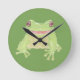 Cute Green Tree Frog - transparent. Round Clock