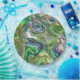 Cute Greenery Blue Abstract Marble Pattern Paper Plate