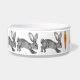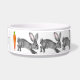 My watercolor painting of a soft grey bunny rabbit in a large format pattern makes a creative bowl for any pet, but especially for your pet rabbit! It has a neutral grey and white look. Bunny also has a brown eye and blush pink ears. Customize with your pet's name between the two carrots - it's easy to personalize using the text template and edit menu. This bowl has no rim, so your bun can't pick it up and dump it. Perfect for anyone who likes rabbits, animals and nature. Whimsical, unique, original artwork & design by Tuzi Williams.