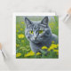 Cute ai grey cat with yellow eyes surrounded by flowers storybook style illustration.