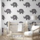 Features grey and white elephant pattern.