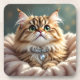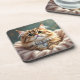An adorable coaster to put your drinks on and protect your tables, with an adorable illustration of a beautiful fluffy tabby cat sporting a diamond collar with a teal background.