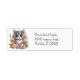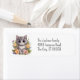 Un adorable chaton gris avec des fleurs fait une étiquette d'adresse de retour amusante et lumineuse.