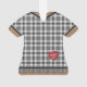 Plaid dress, trimmed with snowflake buttons and lace, showcases your loved one's name. On the back is a small heart "tattoo" in rustic red, with the wording, "Christmas 20xx". Add your own information by following the "Personalize this template" link.