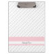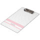 Cute and trendy! Tiny grey polka dots on white clipboard, personalized on the white and pink ribbon across the bottom. Perfect for yourself to add a little spark to your office, or makes a nice teacher gift!