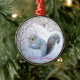 The cute winter wildlife snow scene on this christmas ornament a cute little grey squirrel sitting among the snow covered woodland shrubs and grasses, he's found a bush covered in red winter berries and is enjoying a nibble on his lucky find. This cute squirrel snow scene art is very evocative of the cold winter months in the English countryside, but its cuteness can be appreciated all year round as well. The winter wildlife picture of this hungry little grey squirrel makes an original christmas decoration and the cute image will bring smiles to friends and family over the holiday season. This customisable christmas ornament can be personalised with you’re own text and picture.