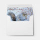 This squirrel snow scene on the inside of this envelope shows a cute little grey squirrel sitting among the snow covered woodland shrubs, he's found a bush covered in red winter berries and is enjoying nibbling his lucky find. The winter wildlife picture of this hungry little grey squirrel makes a unique note card envelope and matches the grey squirrel not card. The picture on this wildlife envelope is produced from my original watercolor painting titled "A Winter Feast.” This is a customizable envelope, you can personalize it by adding your own text.
