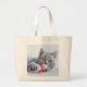 Cute Grey Tabby Cat Christmas Hat Xmas Large Tote Bag