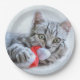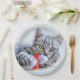 Cute Grey Tabby Cat Christmas Hat Xmas Paper Plate