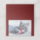 Folded place cards with a cute Christmas photograph of a grey tabby cat playfully biting a red santa hat.
