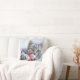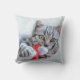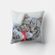 Cute Grey Tabby Cat w/ Christmas Hat Xmas Throw Pillow