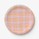 Cute Grid Lines Pattern Pastel Pink and Orange Paper Plate
