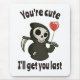 Funny and lovely Grim Reaper with romantic heart balloon says “You're cute, I'll get you last". Perfect for Valentines Day as well as for Halloween. For kids and for adults.