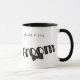 Groom in big bold letters and a black bow tie personalized wedding coffee or tea mug. Fill in your text in the template. Available in different sizes and styles. A Bride mug is available in my gallery.